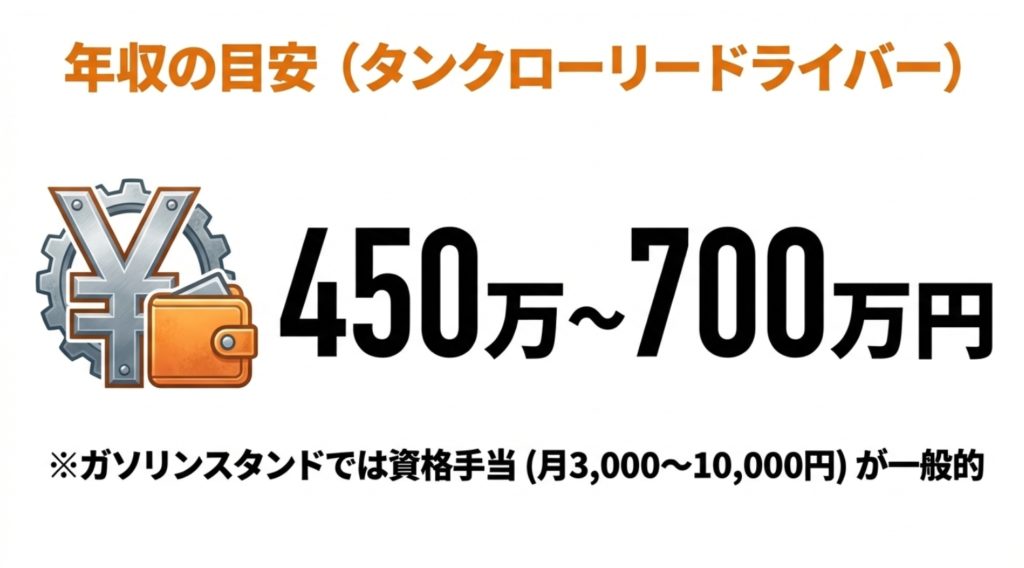 地域や会社にもよりますが、大型タンクローリーのドライバーになると、年収450万円〜700万円以上を狙えるケースも珍しくありません。