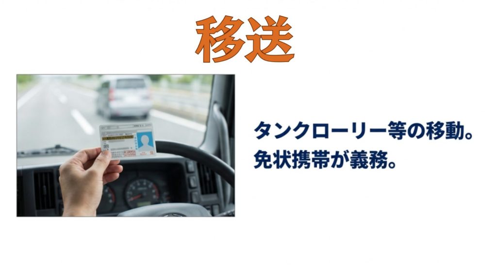 タンクローリーでの移送と免状携帯の義務